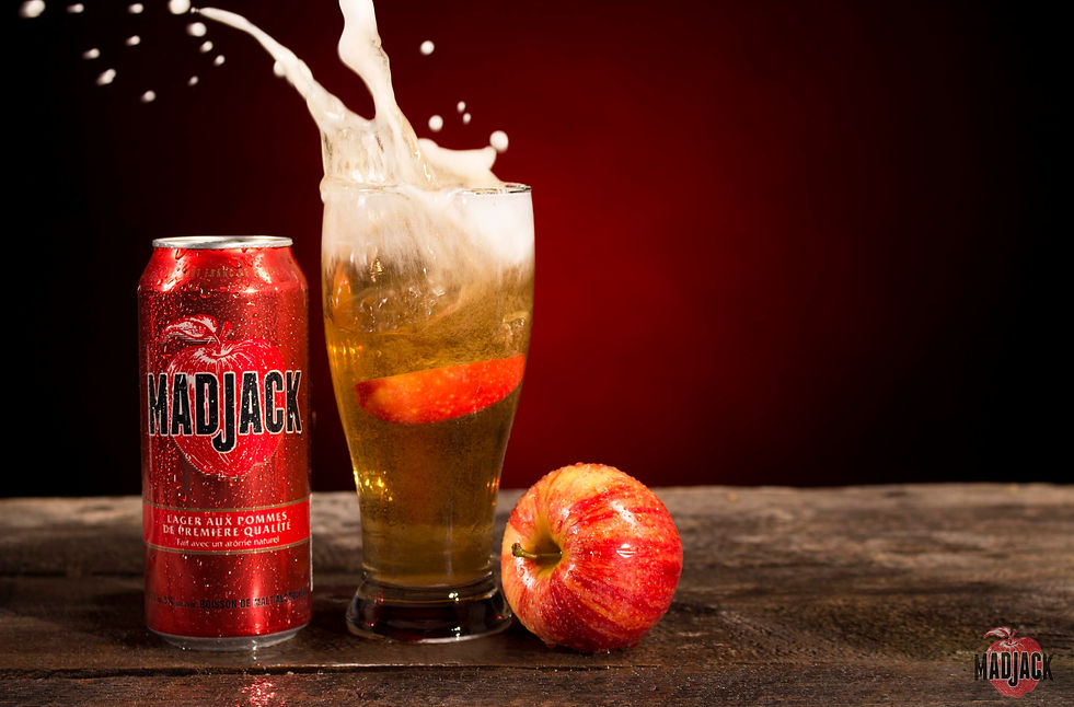 Dans le cadre d'un projet, je devais développer une publicité sur un produit. Mon choix c'est arrêté sur la Madjack. Confectionné dans les usines de Molson, la Madjack est une lager aux pommes de première qualité.